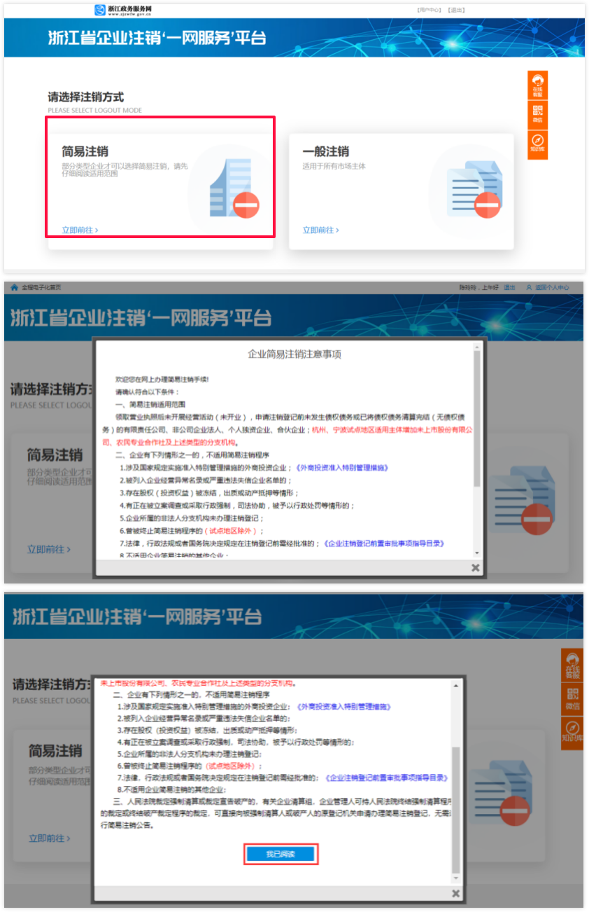 ! 由于涉及前置审批事项不允许进行简易注销,选择之后企业只能进行一般注销,请根据具体情况谨慎选择。